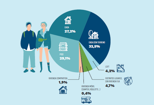 El 32,5% opta por la una “casa con espacio exterior (terreno)” para disfrutar al aire libre, seguida de “piso” (29,1%) y casa (27,2%).